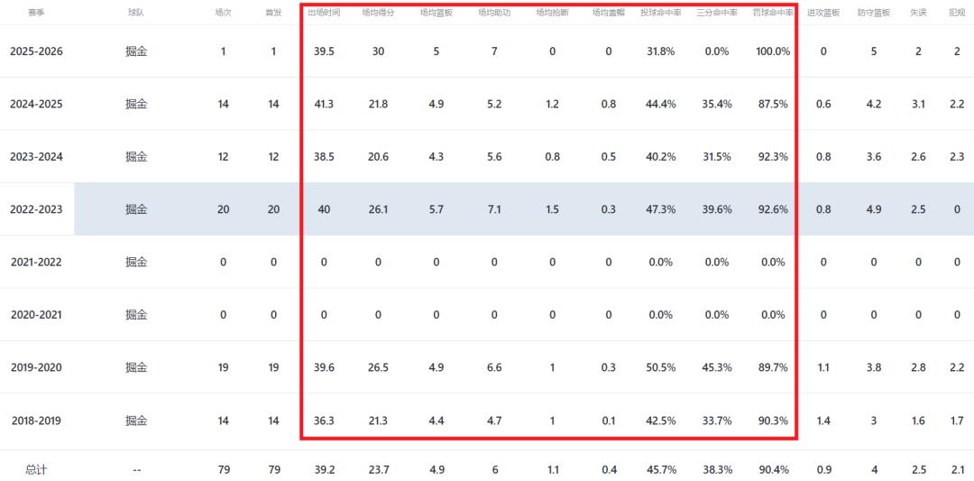 本场掘金两位核心球员,穆雷取得30分5篮板7助攻,正负值+13;约基奇收获25分13篮板11助攻的三双,正负值+9。