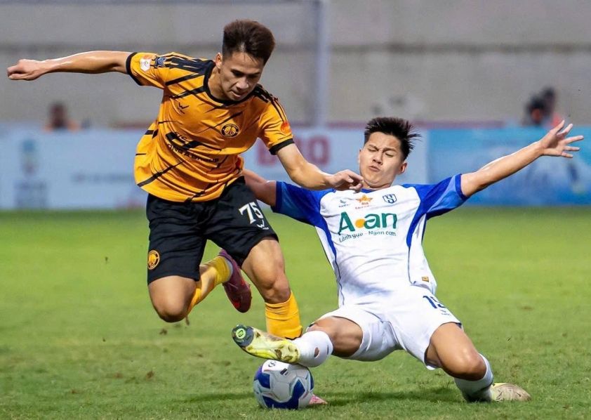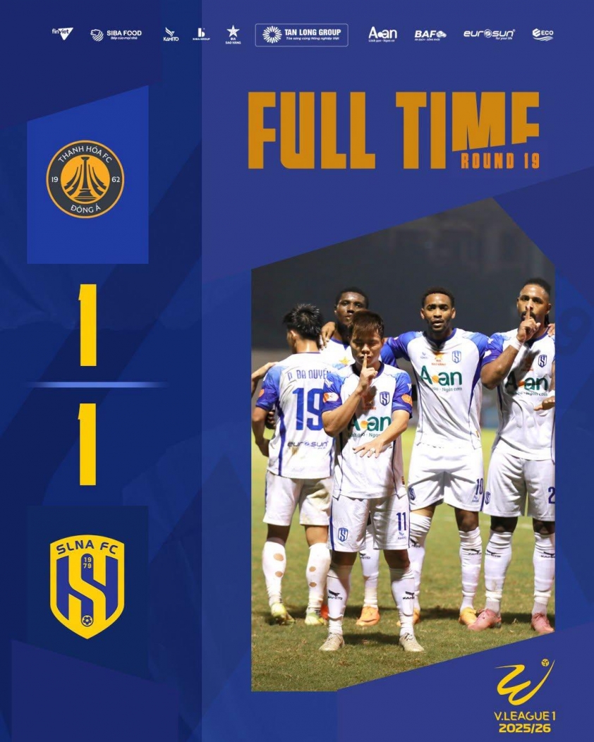 进入下半场,尽管少一人作战且持续被压制,乂安蓝江仍展现出顽强韧性。第70分钟,在一次快速反击中,福尔特斯助攻孟琼干净利落地完成射门,将比分扳为1-1。剩余时间里,清化虽发起密集进攻却未能再添进球,比赛以充满戏剧性的平局结束。